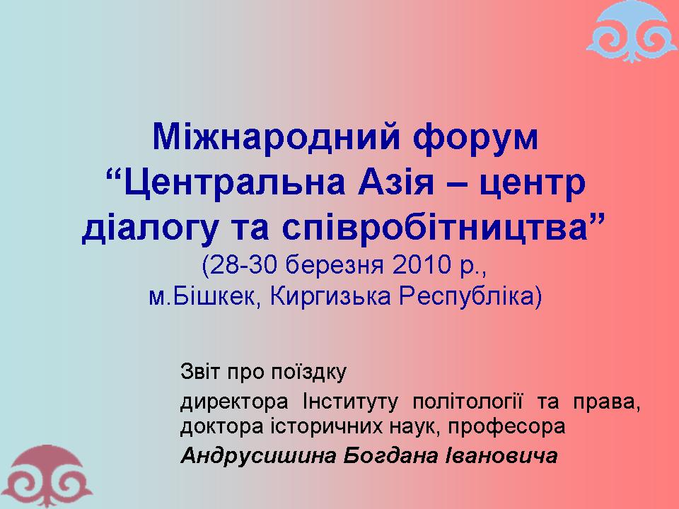 Звіт про поїздку на Міжнародний форум "Центральна Азія - центр діалогу та співробітництва"